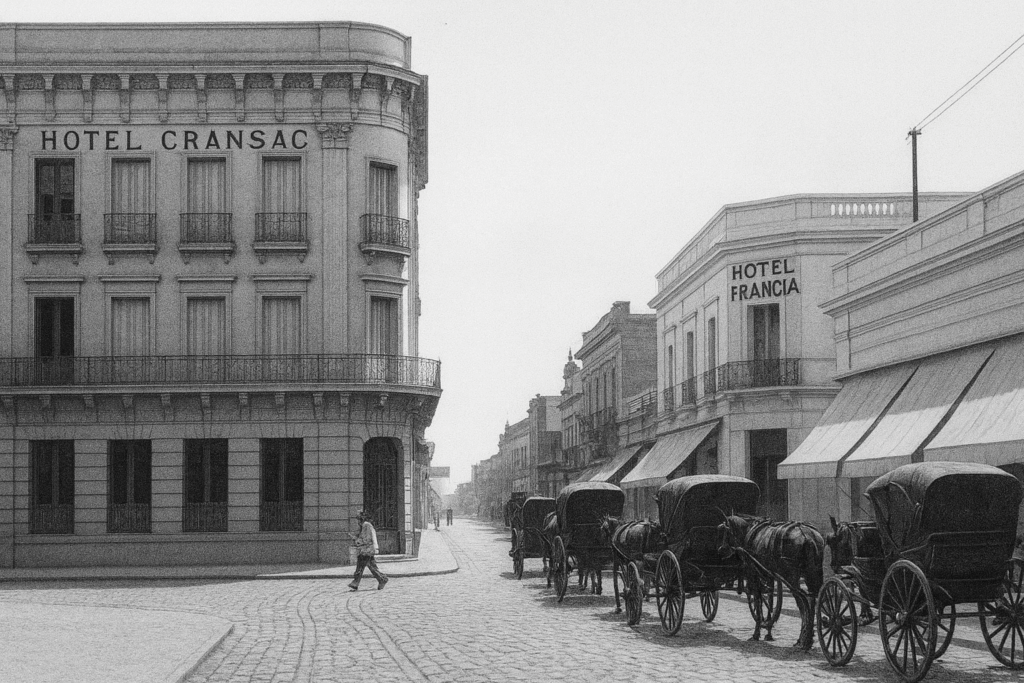 Desde su inauguración, el Hotel Francia desempeñó un papel destacado en la vida urbana de Paraná. Fue uno de los primeros hoteles de la ciudad, contemporáneo a otros establecimientos pioneros, y rápidamente se convirtió en punto de encuentro de la sociedad local. Su estratégica ubicación en la “esquina de los Generales” (así llamada por el cruce de las calles San Martín y Urquiza) lo hizo testigo privilegiado de la historia paranaense. En sus salones y comedores se realizaban tertulias, banquetes y bailes de la élite local a fines del siglo XIX[5], lo que lo consolidó como centro de la vida social. Varios testimonios de época resaltan que en el Hotel Francia “se entretejía la historia” cotidiana de Paraná, al ser escenario tanto de celebraciones familiares como de reuniones cívicas importantes.