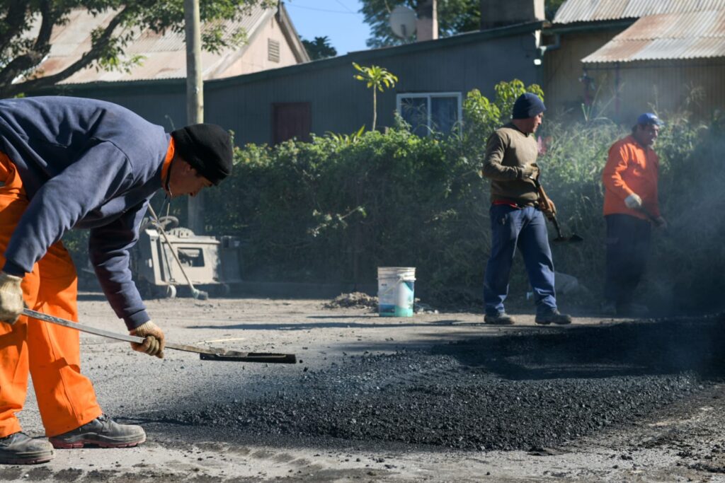 Los trabajos abarcan avenida Larramendi y avenida Estrada, en Bajada Grande. Se trata de uno de los frentes de bacheo que impulsa la Municipalidad en la ciudad.
