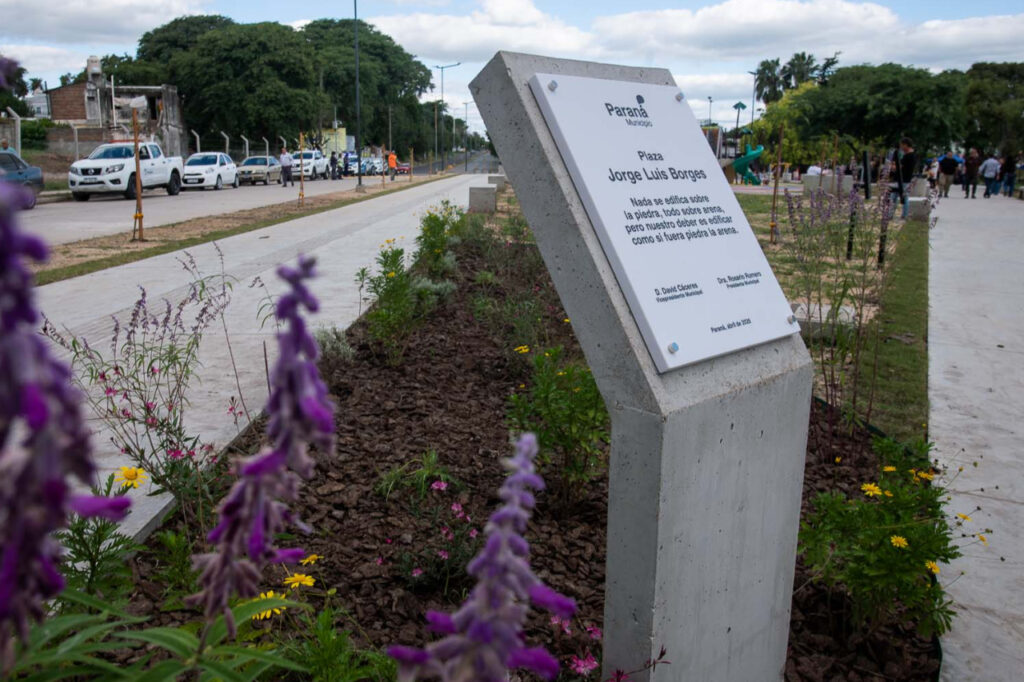 La Asociación de Escritores Entrerrianos, a través de su presidente Lucía Pabón Morales, sugirió el nombre de Jorge Luis Borges para nombrar a la nueva plaza ubicada en Pronunciamiento y San Martín. La iniciativa permitió reivindicar el fuerte vínculo del autor con Paraná.