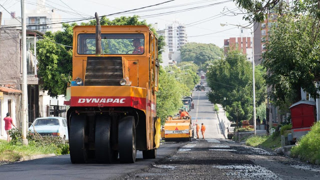 Durante la jornada de hoy, y en el marco del plan integral de recuperación de la trama vial que encara el gobierno municipal, se realiza la colocación de la nueva capa asfáltica en todo el ancho de la traza de calle Mariano Moreno, entre el puente sobre el arroyo La Santiagueña y calle San Luis.