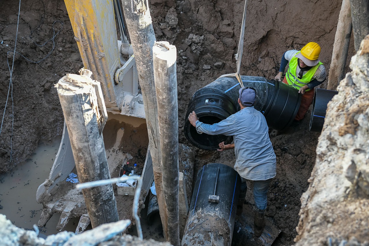 La intervención forma parte de la obra que permitirá aumentar la provisión de agua potabilizada al Centro Distribuidor Ramírez, mejorando la distribución hacia la zona oeste de la ciudad.